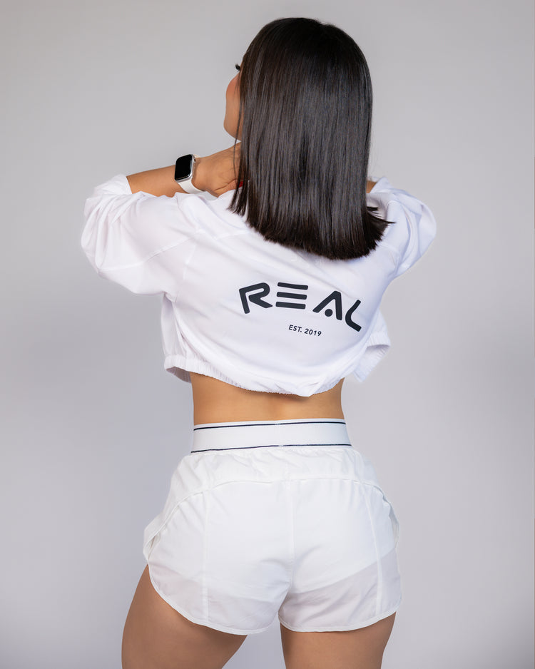 Meet your new lightweight go-to. This cropped jacket features a full front zipper, elastic waistband, and cinched cuffs for a sleek, flattering fit that moves with you. Designed to block the sun—not your style—it’s breathable, easy to layer, and perfect for active days or laid-back looks. Finished with our signature 3D Real logo on the back, because the details always speak volumes.
